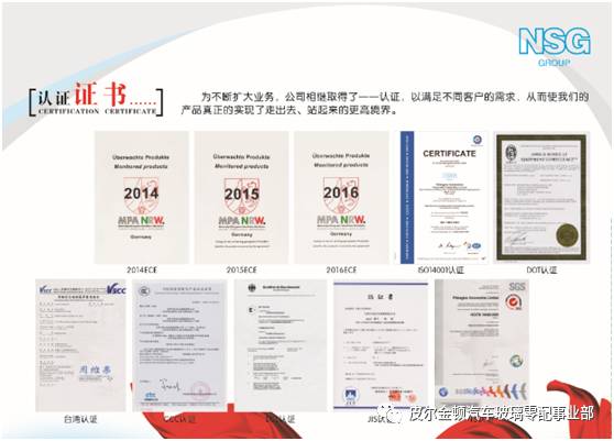 公司是隶属于日本板销子集团(NSG)的独资企业,公司从最初出口原片玻璃到日本,发展到现在为丰田、马自达、铃木、斯巴鲁、戴姆勒等著名车企提供相关配套产品,足以证明的成长。